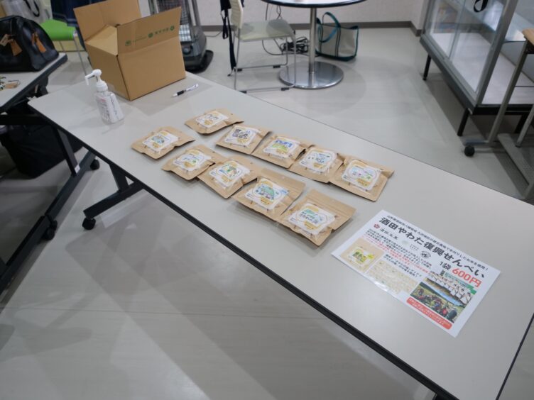 地域の方のハンドメイド雑貨やココサトさんにご提供頂いた昨年の豪雨災害 復興せんべいも販売されました。