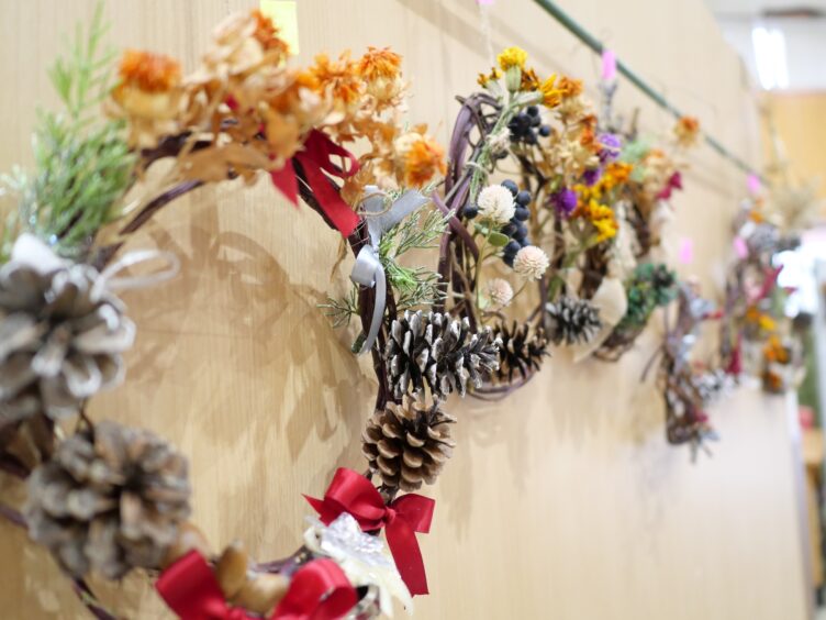 先日、入所の午後活動でクリスマスリース作成を開催しました。