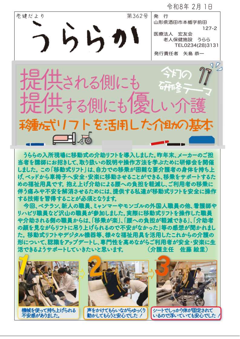 施設内会報一覧Kaihou 医療法人 宏友会 > 施設内会報一覧 診療所だより 最新号診療所だより1月号 - 第452号 クリックでPDFを表示します。 バックナンバー 診療所だより1月号(第452号) 診療所だより12月号(第451号) 診療所だより11月号(第450号) 診療所だより10月号(第449号) 診療所だより9月号(第448号) 診療所だより8月号(第447号) 診療所だより7月号(第446号) 診療所だより6月号(第445号) 診療所だより5月号(第444号) 診療所だより4月号(第443号) 診療所だより3月号(第442号) 診療所だより2月号(第441号) 診療所だより1月号(第440号) 診療所だより12月号(第439号) 診療所だより11月号(第438号) すべてのバックナンバーを見る うららか老健だより 最新号うららかR8年2月号 - 第364号 クリックでPDFを表示します。 バックナンバー うららかR8年2月号(第364号) うららかR8年1月号(第363号) うららかR7年12月号(第362号) うららかR7年11月号(第361号) うららかR7年10月号(第360号) うららかR7年9月号(第359号) うららかR7年8月号(第358号) うららかR7年7月号(第357号) うららかR7年6月号(第356号) うららかR7年5月号(第355号) うららかR7年4月号(第354号) うららかR7年3月号(第353号) うららかR7年2月号(第352号) うららかR7年1月号(第351号) うららかR6年12月号(第350号) すべてのバックナンバーを見る ほがらかほなみだより 最新号ほがらか 第111号 - ほがらか 第111号 クリックでPDFを表示します。 バックナンバー ほがらか 第111号(ほがらか 第111号) ほがらか 第110号(ほがらか 第110号) ほがらか 第109号(ほがらか 第109号) ほがらか 第108号(ほがらか第108号) ほがらか93号 ほがらか92号 ほがらか91号 ほがらか90号 ほがらか89号 ほがらか88号 ほがらか87号 ほがらか86号 ほがらか85号 ほがらか83号 ほがらか74号 すべてのバックナンバーを見る